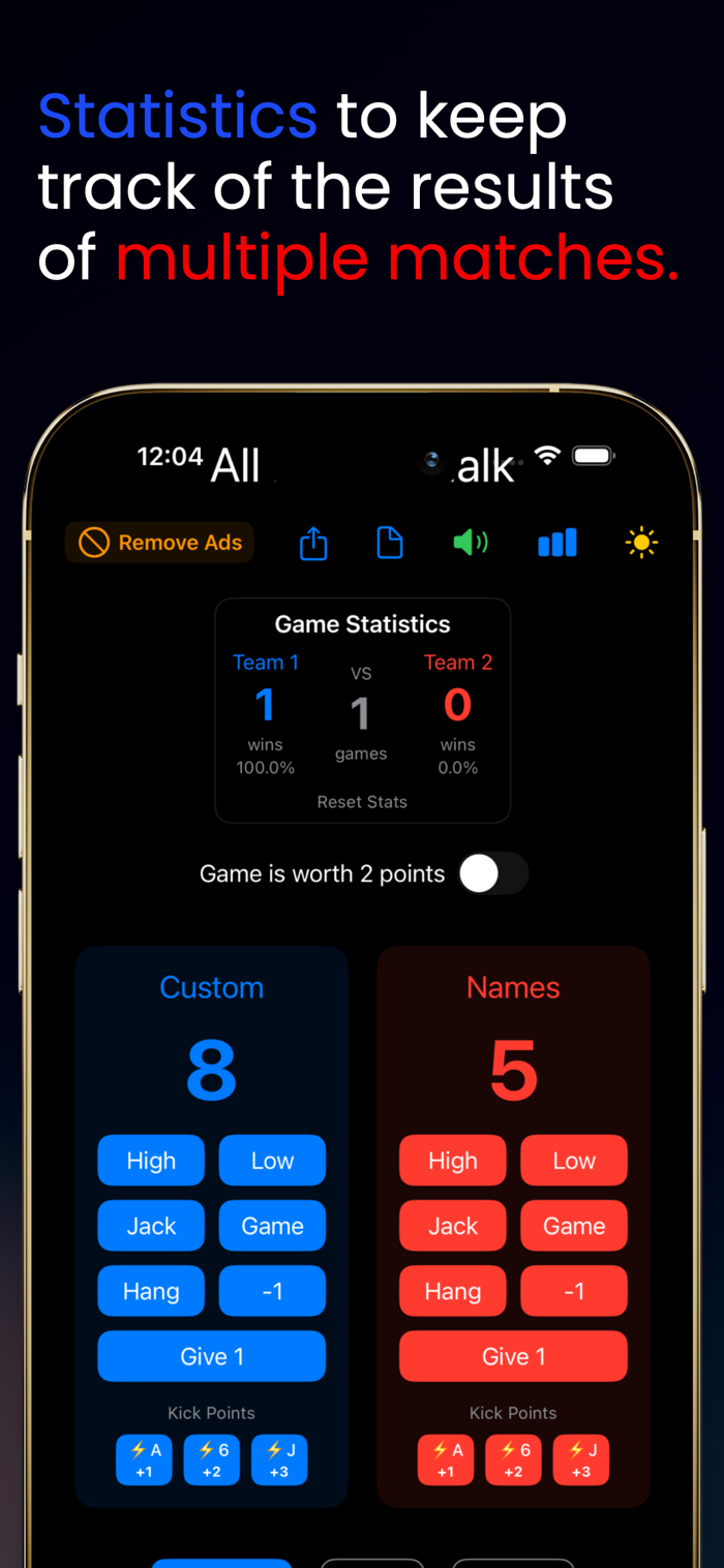 这款数字记分员能让你轻松记录四人牌戏的分数。它有完整的计分系统,涵盖高、低、杰克、游戏、挂等分数及翻牌计分。具备追踪增强功能,如可定制队名、调整游戏分值、有撤销按钮、能追踪分数历史和统计数据、方便分享分数。用户体验良好,界面简洁直观,支持明暗模式,有音效和触觉反馈,一键计分按钮。适合想专注游戏而非计分、准确记录复杂分数、与朋友分享结果、长期追踪统计数据的四人牌戏玩家。