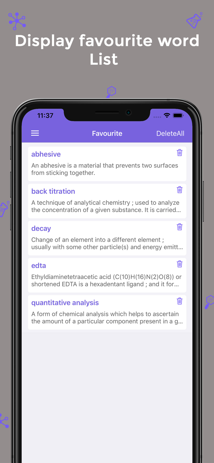 Chemistry Dictionary contains thousands of the most frequent and used but however most tricky to find chemistry terms, puzzles, and idioms used for academic and professional purposes with clearly easy definitions, everywhere anytime without internet connection.