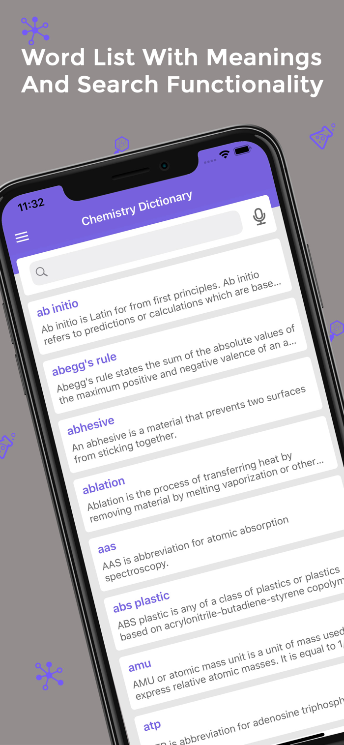 Chemistry terminology app allow you to search chemistry terms and see the definition for the same.