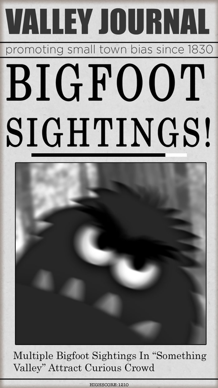 Bigfoot has had ENOUGH! He is on a rampage and nothing can stop him! (Except for maybe Bigfoot nerds, Boy Scouts, Girl Scouts, hunters, and the Marines). Blow off some steam and see how far you wild Bigfoot Rampage can take you before the forest is gone!
