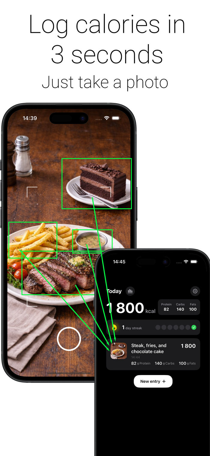 QuickCal lets you track calories and macros in seconds using AI. No searching, no scanning, no friction.