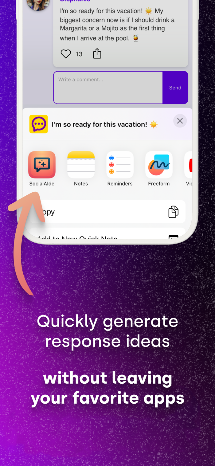 • Seamless Integration: No need to leave your favorite apps. Social Aide works directly from the share sheet.