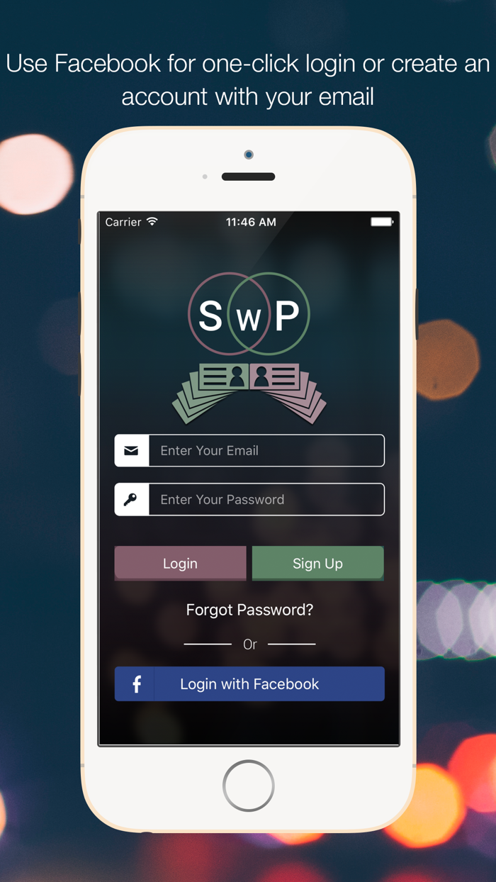 SwoopMeet completely takes away the necessity to carry a business card. Simply create your own in-app business card by choosing a theme and add any information you would want to pass on to a new contact. Then, at your next networking event, have your new associates just scan the unique QR code connected to your business card and they instantly have all of your contact info at the touch of a finger.