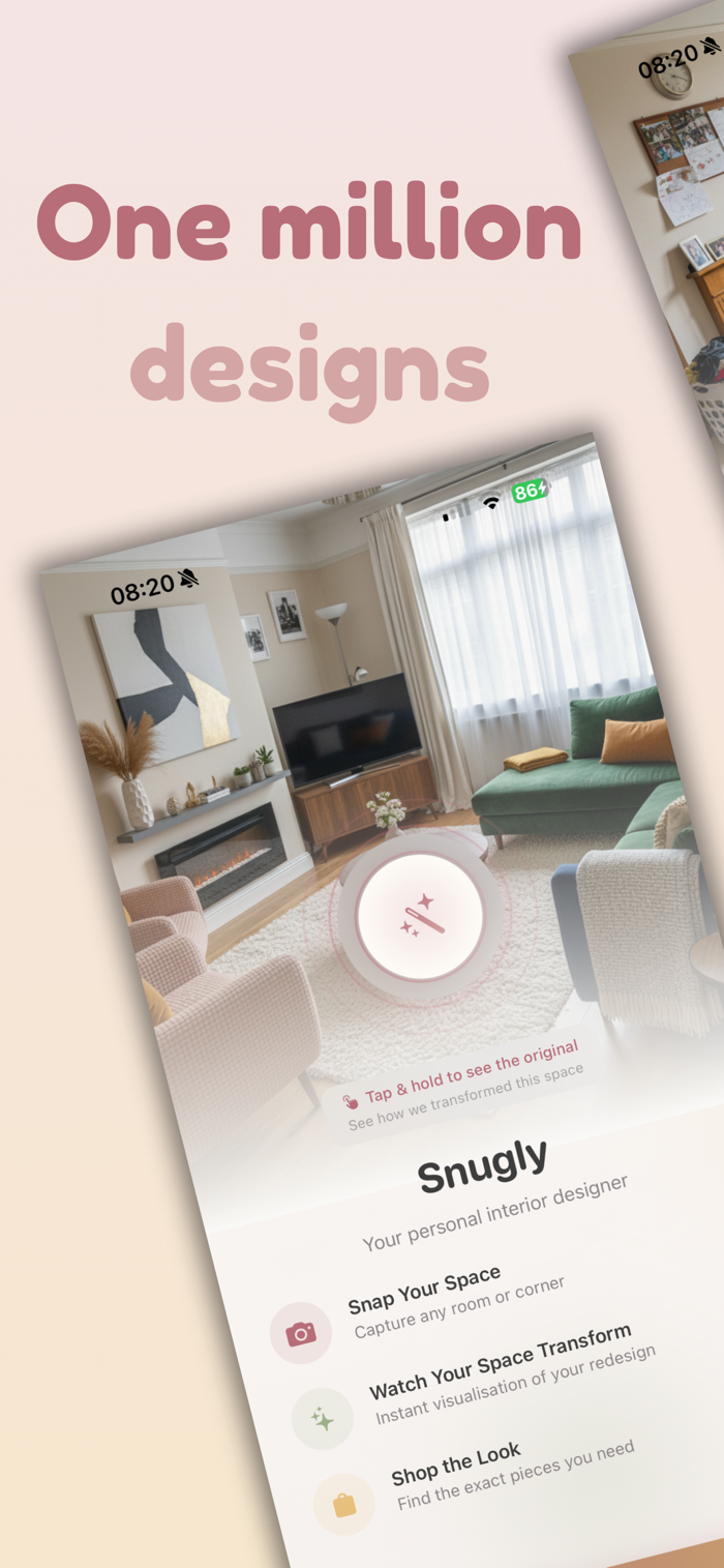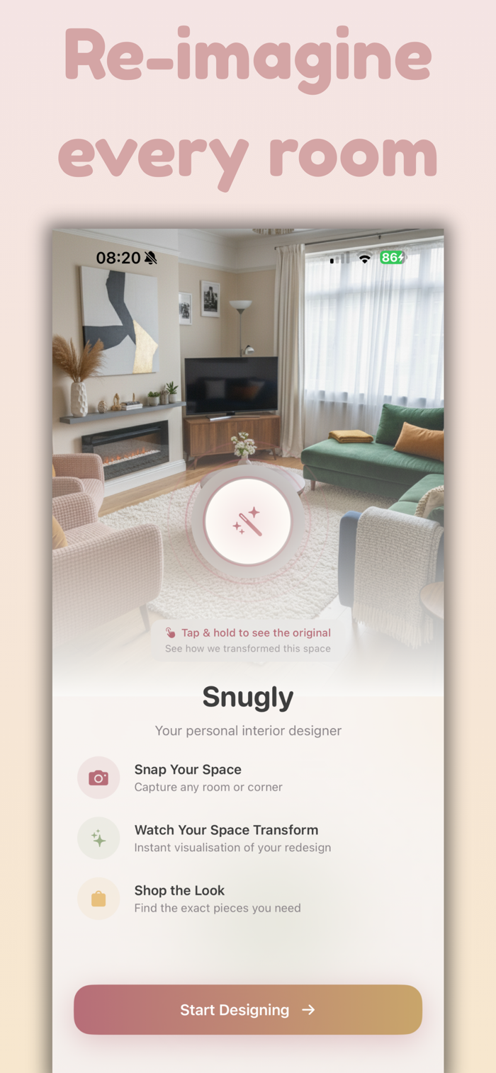 Transform any room in your home with Snugly — your personal interior designer in your pocket.
