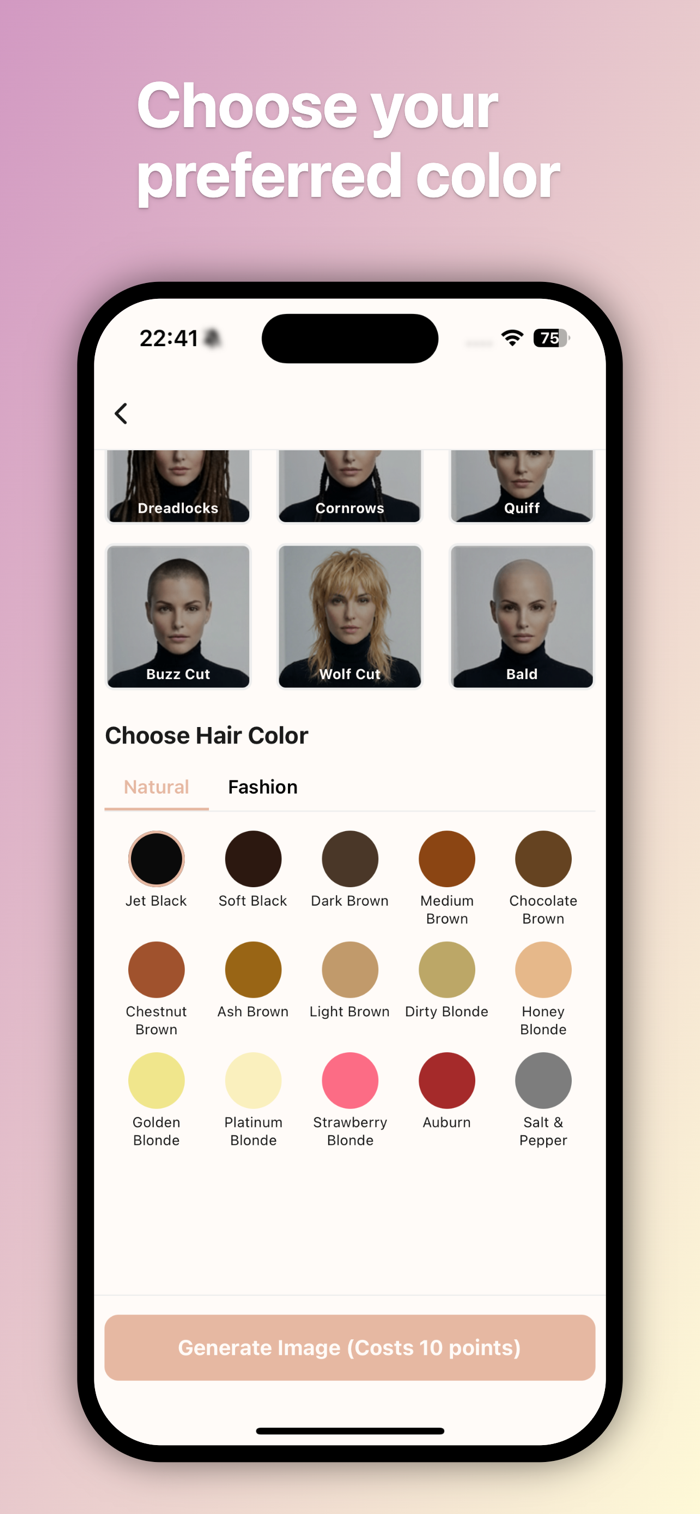 • 发色:金发、棕发、红发、时尚色