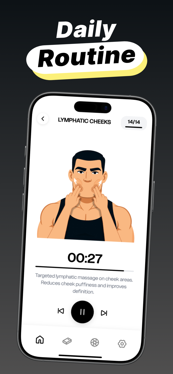 Transform your facial structure with structured daily routines. Track progress, build streaks, and unlock achievements as you complete each session. Fully customizable based on your goals.
