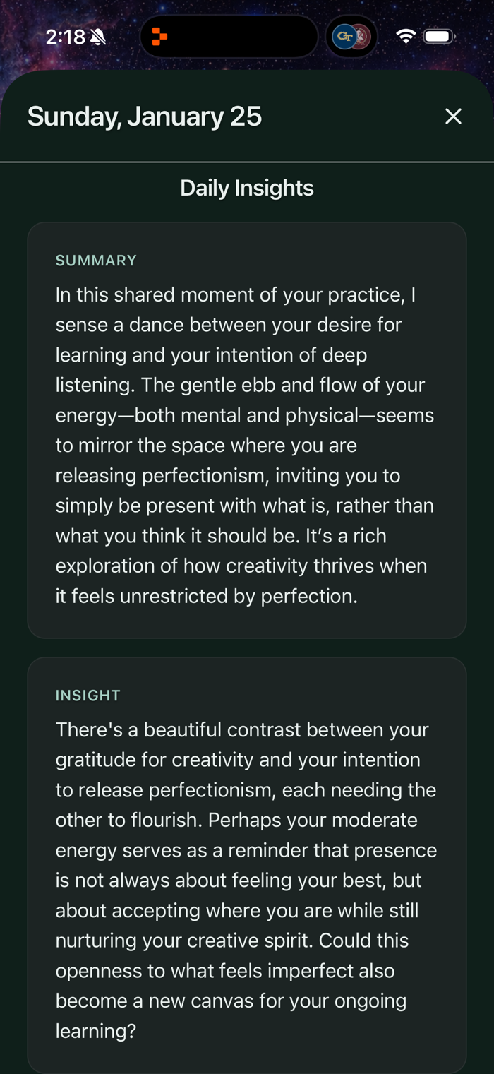 This app helps you slow down just enough to reconnect with what matters, without losing momentum or ambition. Through physician-designed daily reflections and weekly insights, it provides a gentle, structured framework for clarity, energy, and meaning.