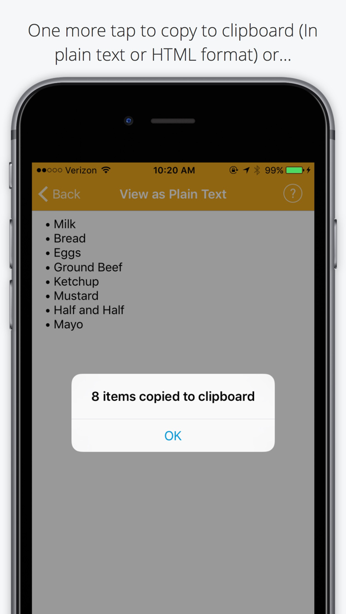 4. Export as plain text, HTML, or as iOS Reminder items