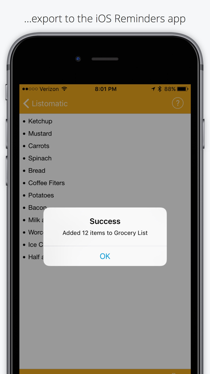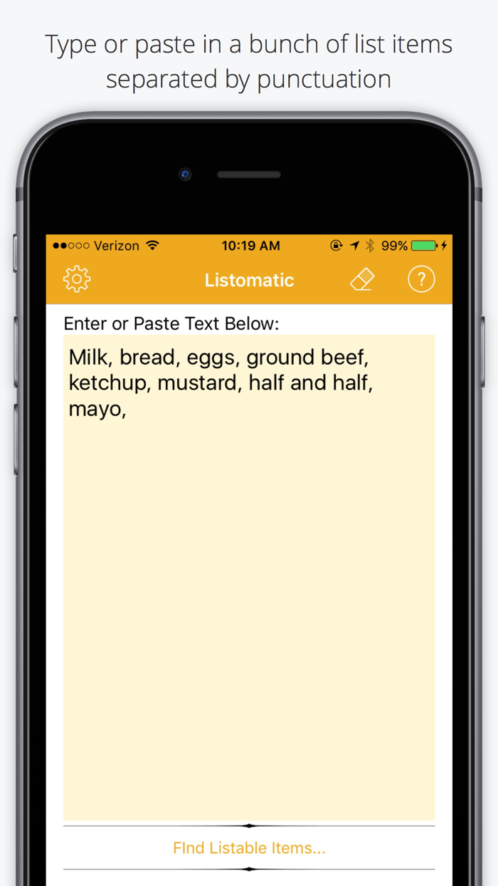 Quickly convert any block of text into a formatted list. Export your list as Plain Text, HTML, or as items in iOS Reminders App.