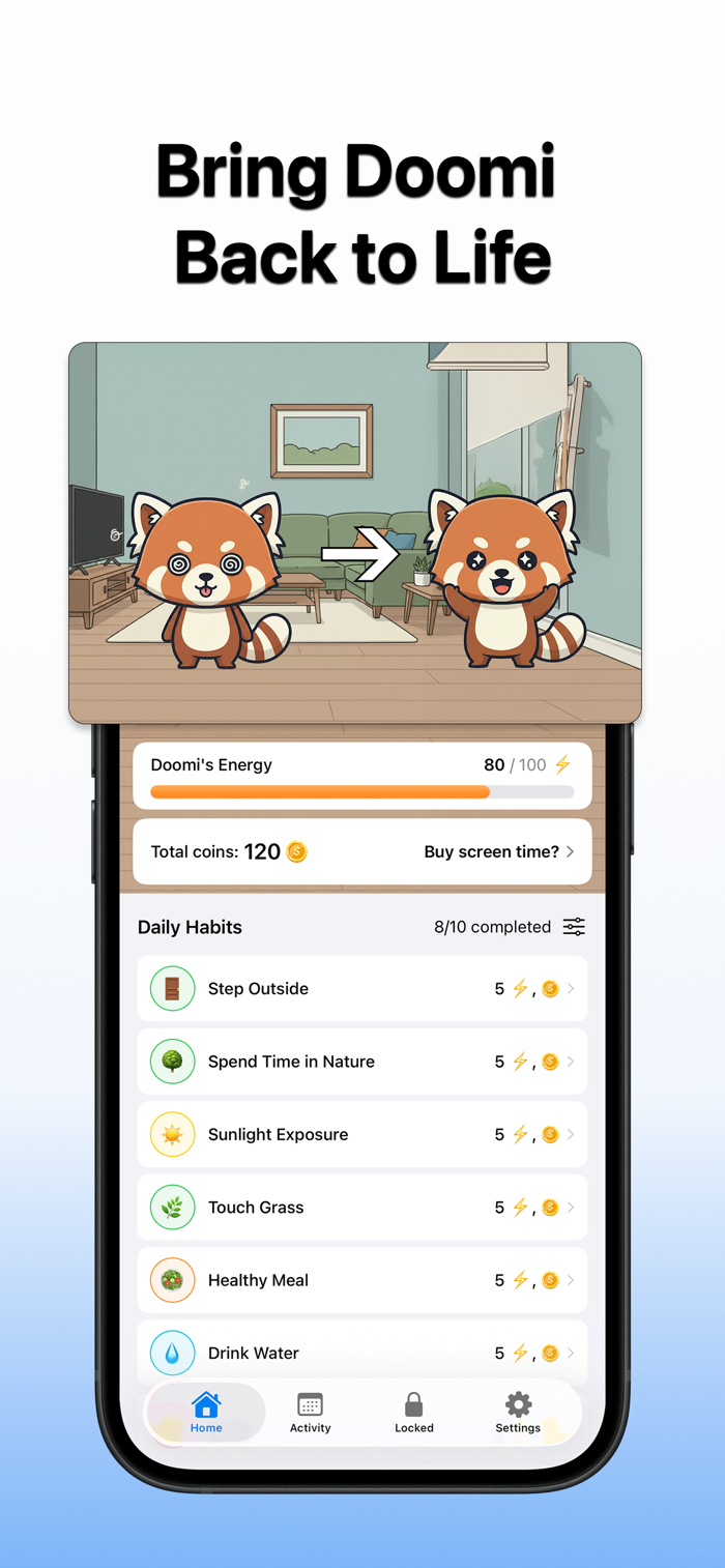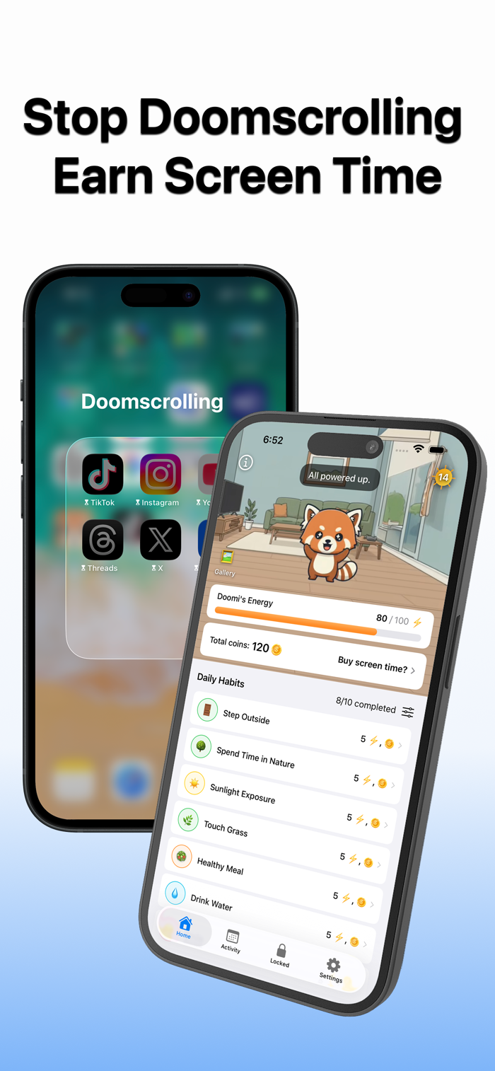 DoomFree blocks your most addictive apps until you earn screen time through real-world habits.