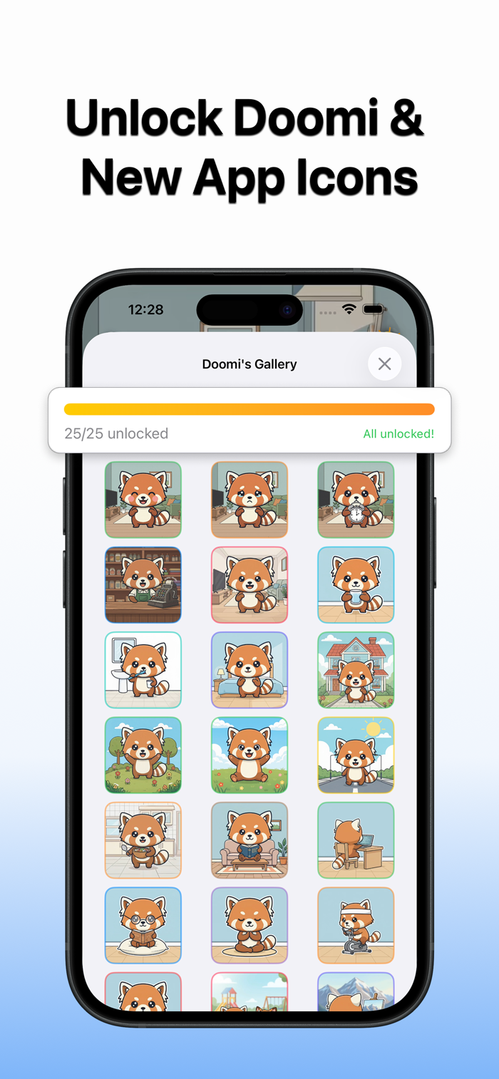Your focus companion. Doomi’s mood reflects your daily progress: