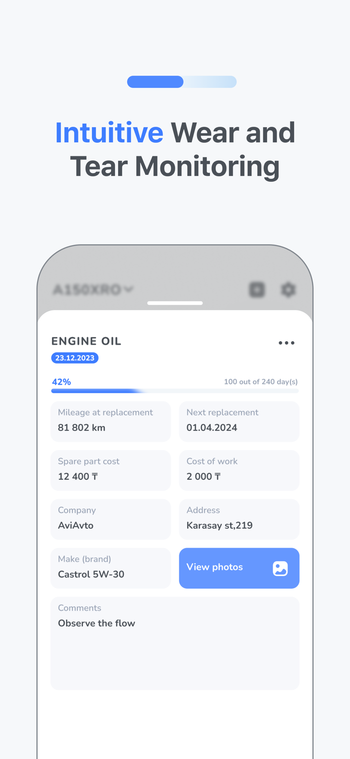 Log every service and repair with date, mileage, cost, parts, labor, photos, and notes. Your full car service history stays structured and searchable.