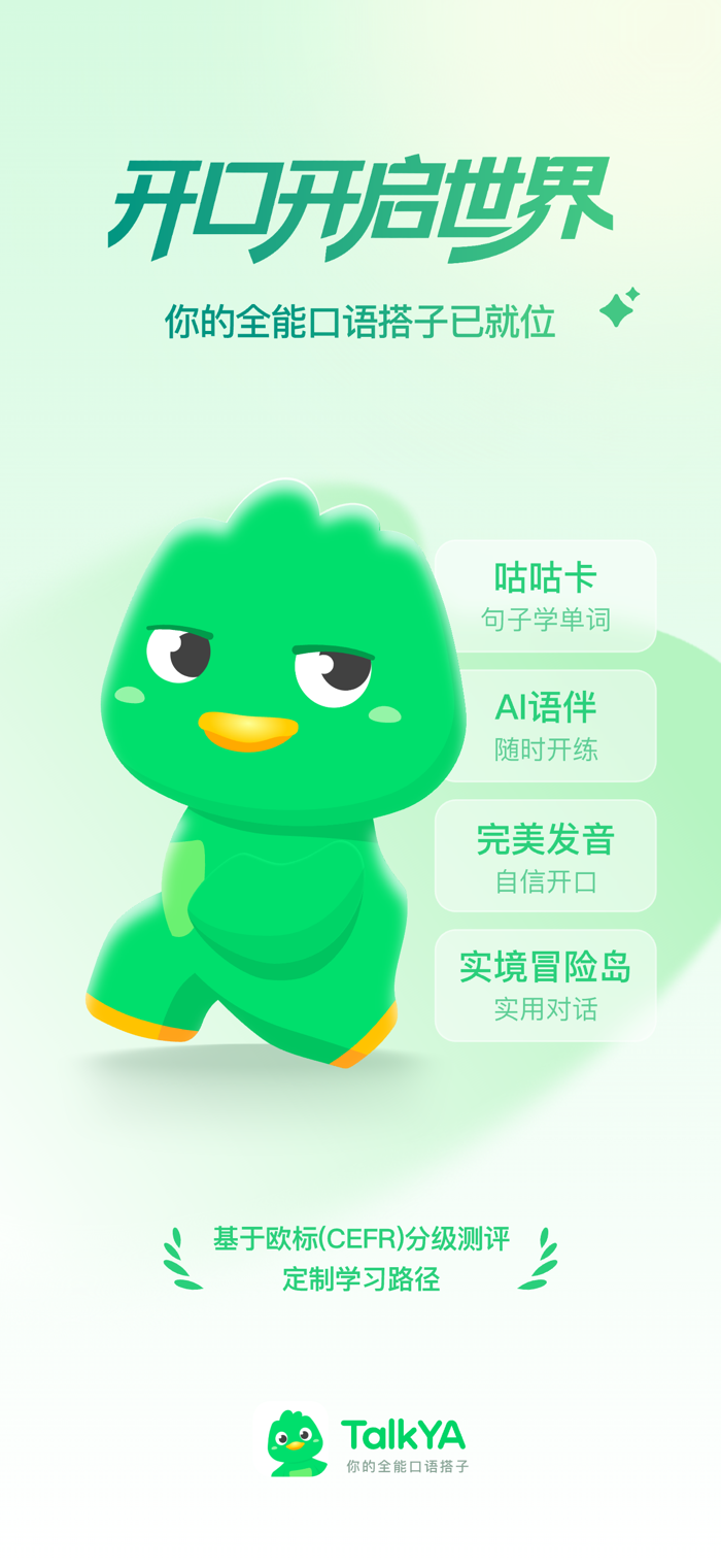 TalkYA 英语为你提供一整套科学、轻量、无压力的口语提升方案,让说英语成为一种习惯。