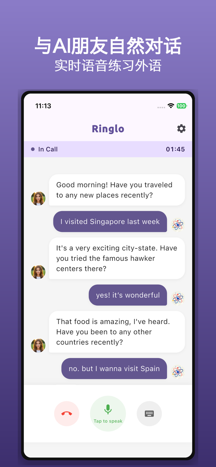 Lingcall可将手机变成英语练习伙伴,无需联网就能与AI角色语音对话。选择AI朋友开启通话,自然说话获即时响应。其主要功能包括语音对话练口语、从多样AI角色中挑选、设备端AI保证隐私、自动提取词汇供复习、有闪卡测验及游戏化机制,还能预定通话,提供3次免费体验。语音在设备本地处理,保障隐私,快来下载Lingcall开启英语练习。