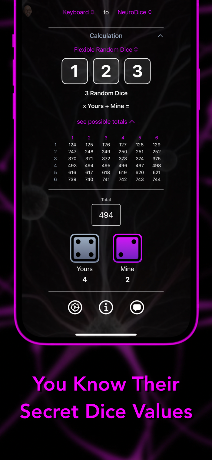 Receive the information inside the app, or let NeuroDice automatically create a hidden prediction in Notes that reveals the exact dice values your participant is thinking of...all without ever touching a real die.