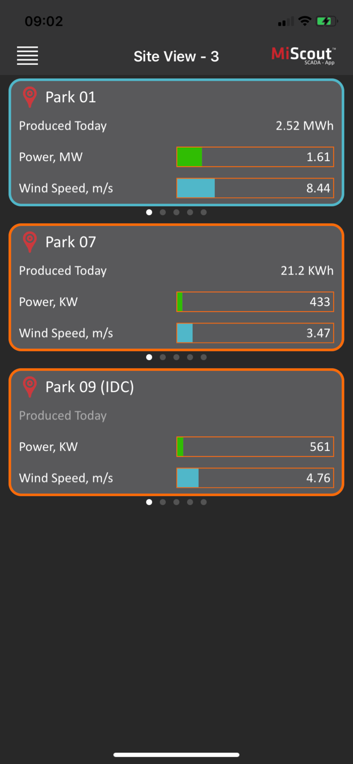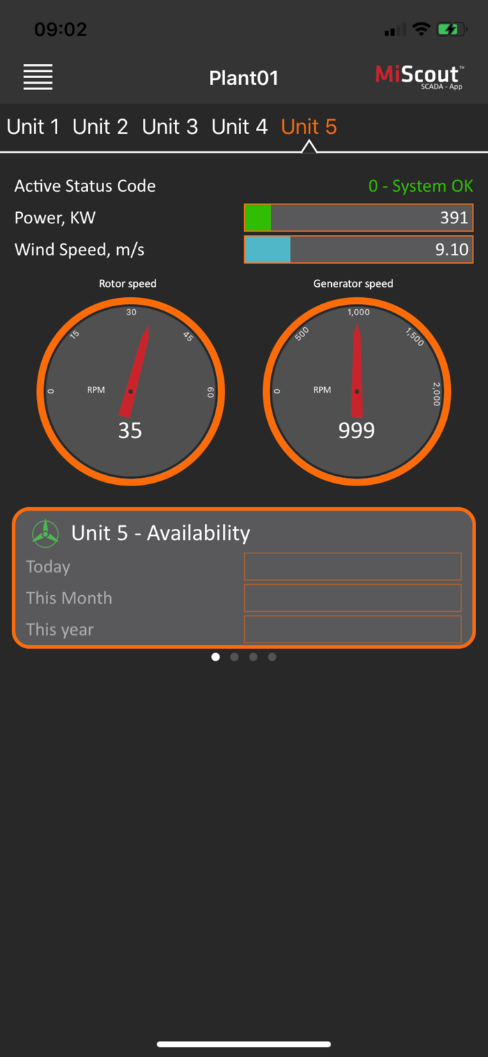 MiScout SCADA - App is an extension to MiScout Web SCADA solution enabling to connect to turbines or wind parks and monitor production, availability, alarms, weather conditions and more. It allows to instantly be online with wind turbines thus reacting to alarms and changing conditions.