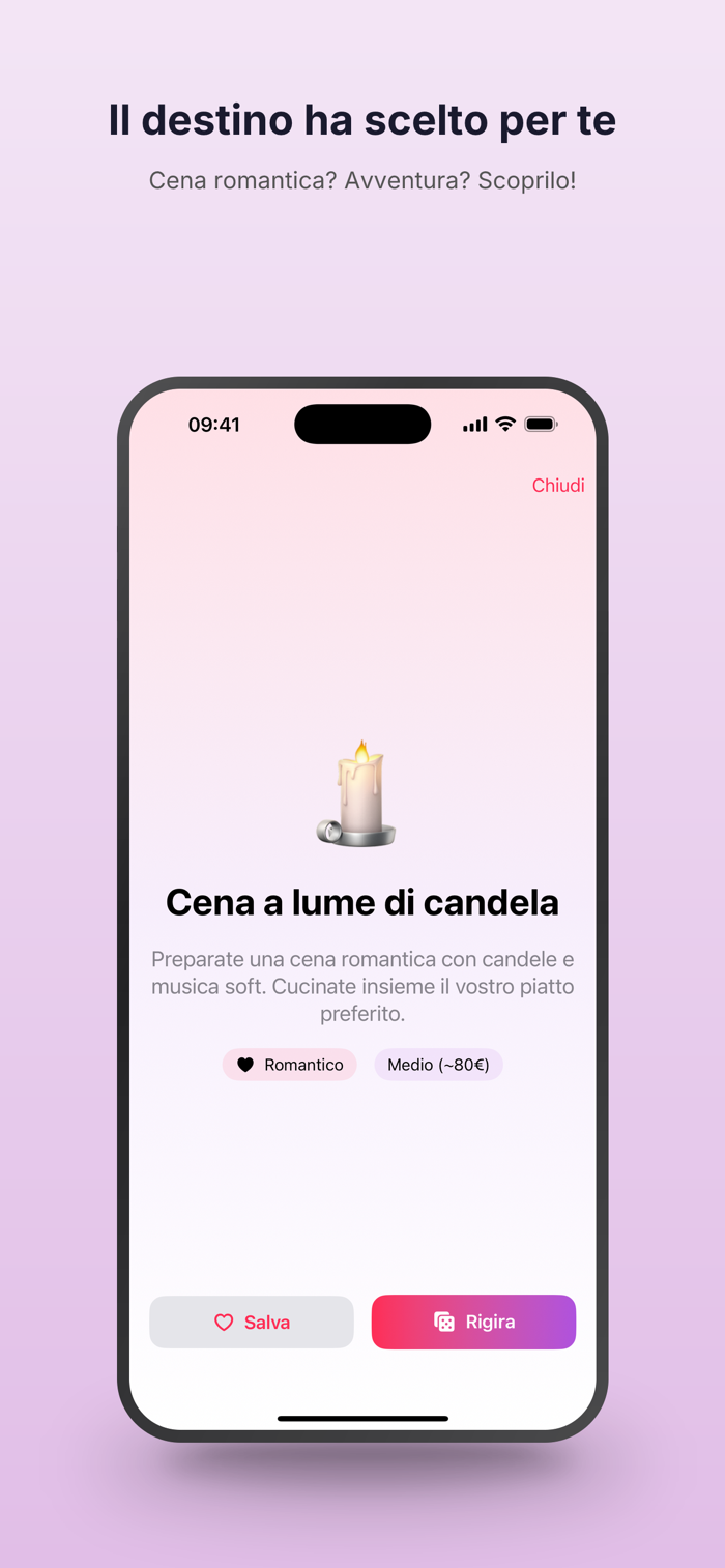 Che facciamo stasera? è l'app che ti suggerisce idee originali per uscite e serate. Scegli la categoria, imposta il budget e gira: in un secondo hai il piano perfetto.
