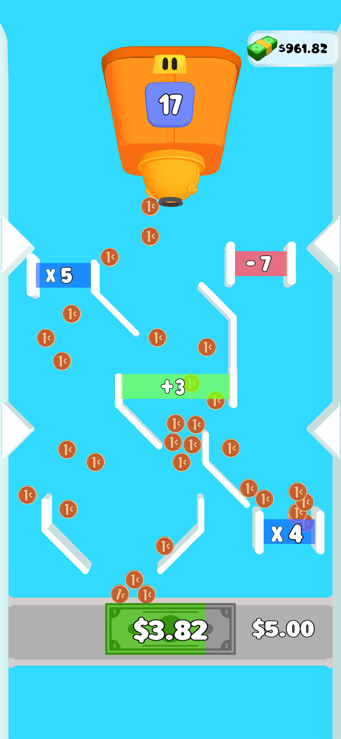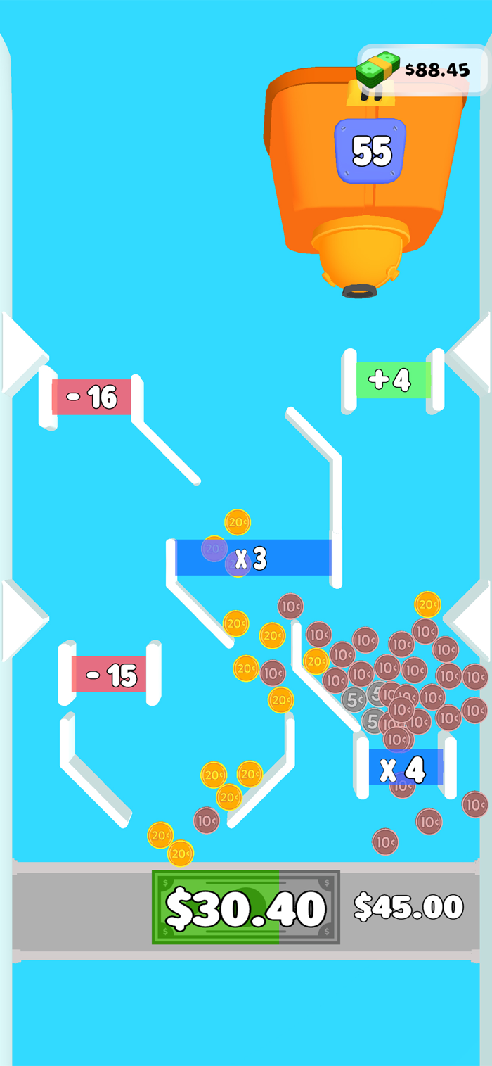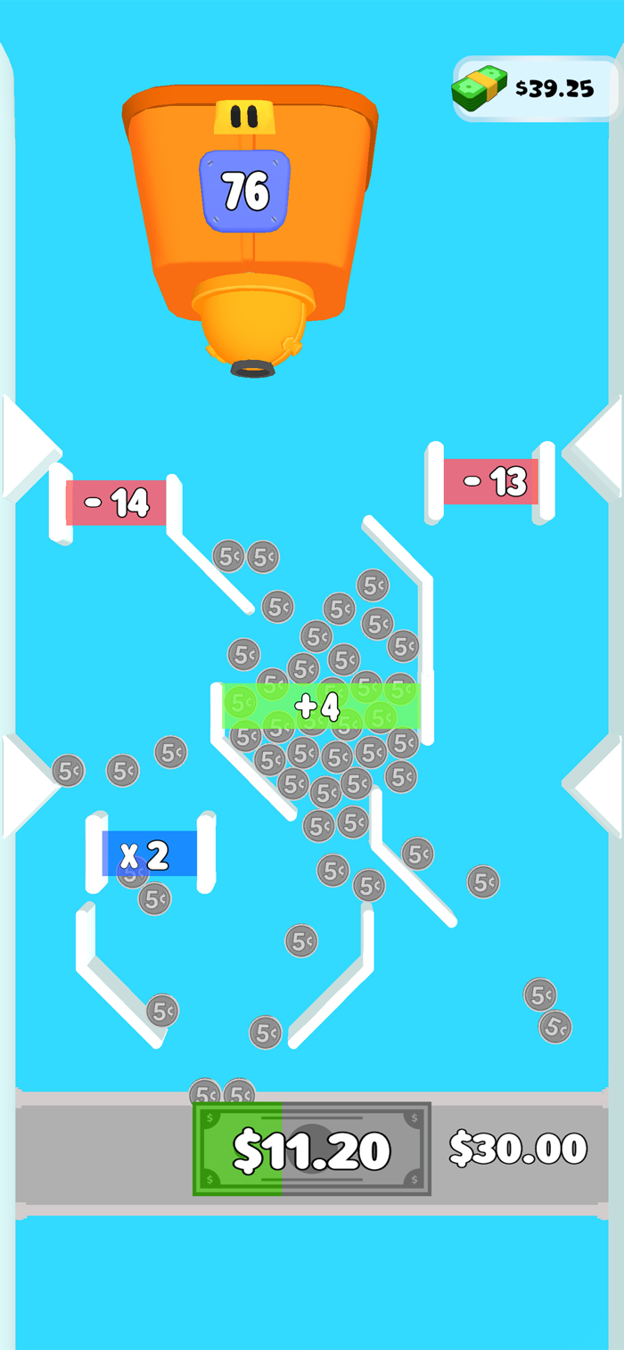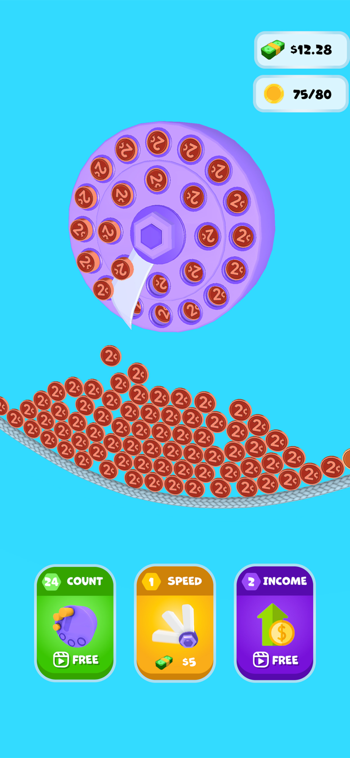 切开从机器出来的硬币并赚取收入。用你的奖金打开新的硬币槽并增加你的硬币数量。带着催眠效果不断前进,进一步改进你的机器以生成更多硬币!