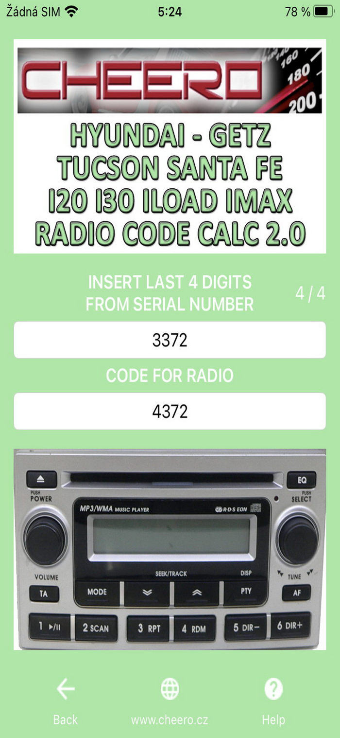 RADIO CODE GENERATOR for HYUNDAI GETZ SANTA FE SONATA TUCSON I20 I30 ILoad IMax etc.