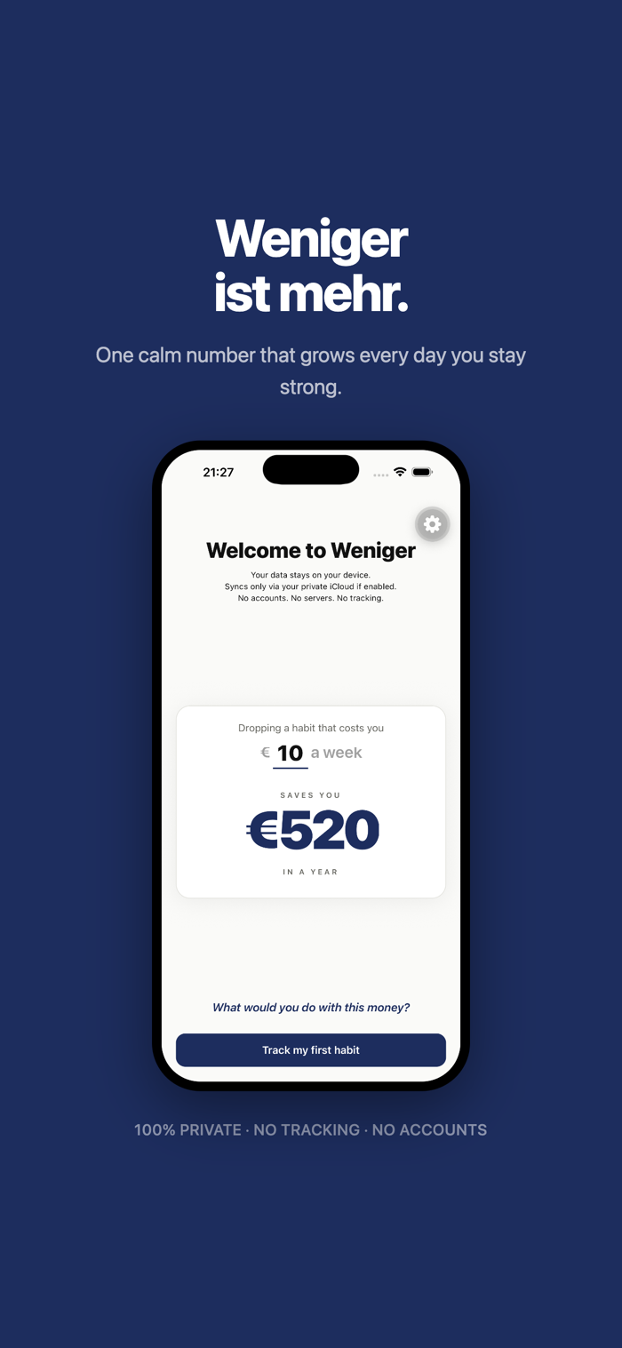 Weniger shows you the financial freedom that comes from dropping unwanted habits. Every day counts.