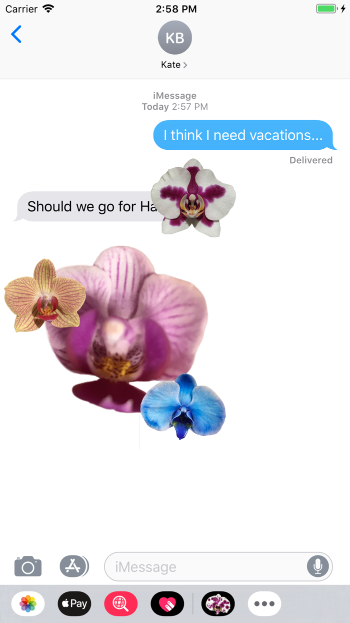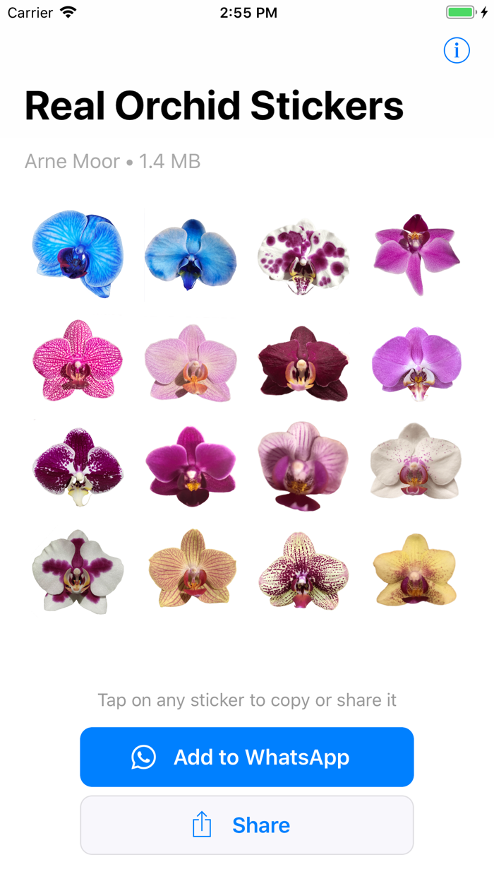 Enjoy the beauty of orchid stickers in your chats regardless if they are in iMessage or Whatsapp with direct access to the stickers. For other apps you can copy or share them directly from within the app.