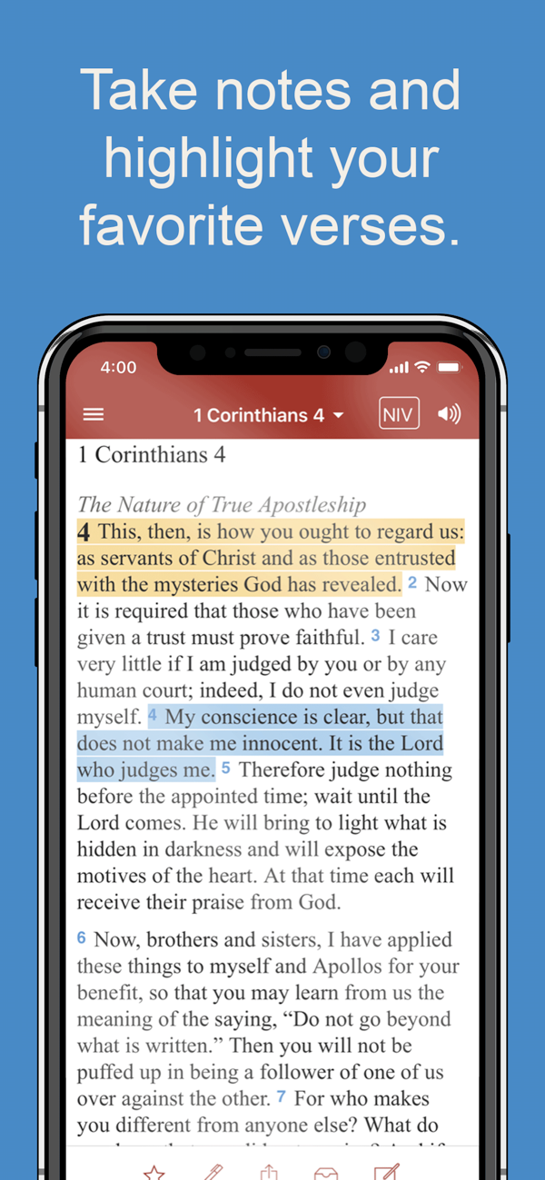 • Highlight, take notes, respond to your favorite verses with emojis and sync across devices with your free account
