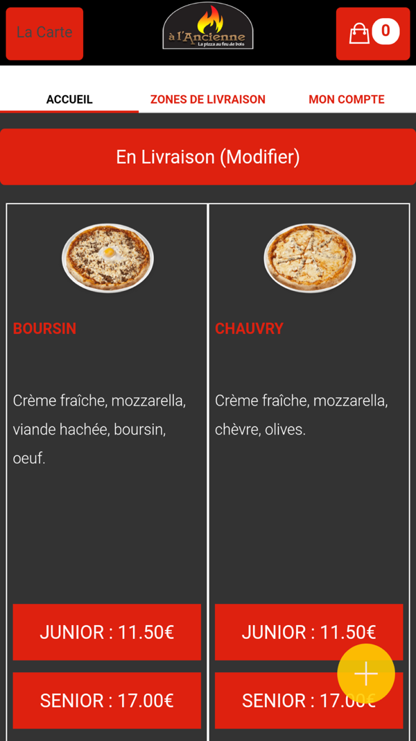 Pizza a L ancienne的iPhone/iPad应用程序,支持在线或电话订餐。可查看菜单选品,配送范围涵盖Carrieres-Sur-Seine等多地,最低消费15€。营业时间为6/7的18:00至22:30,周五、周六及节假日18:00至23:00,周一闭店。店铺位于21 Place Pierre et Marie Curie,78360 Montesson,电话01.61.04.94.68 ,网址http://www.pizza-a-lancienne.fr/ 。