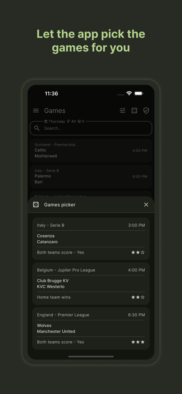 Search and filter effortlessly to find the matches you're interested in, and gain valuable pre-game insights to enrich your football experience. Fine-tune your analysis by filtering predictions based on confidence level (most stars), recommended picks, and popularity. Remember, while our predictions are powerful, they are not guarantees. Use them as a springboard for your analysis and informed decision-making.