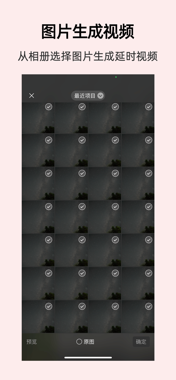 支持从相册选择图片生成延时视频!