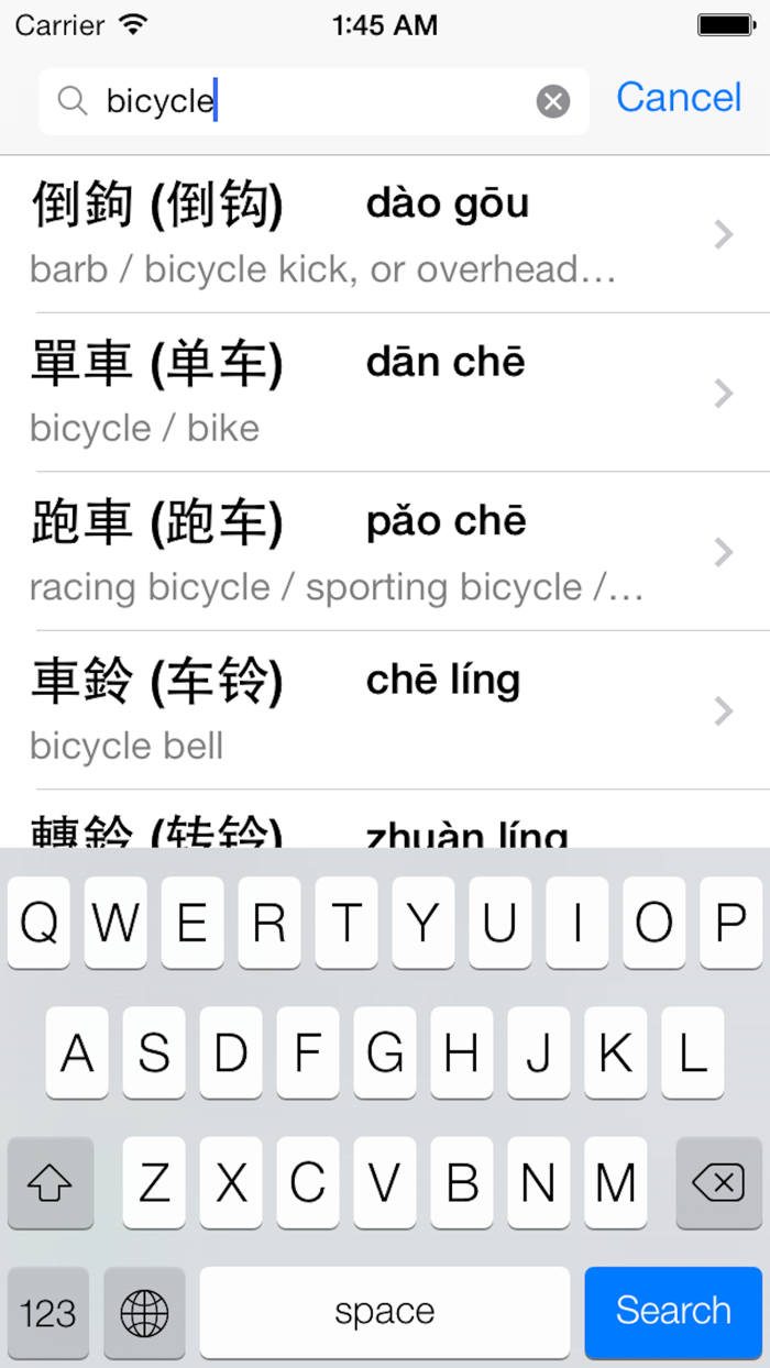 - Search Pinyin, English, Chinese at the same time.