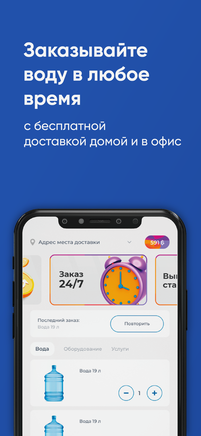 Скачайте бесплатное приложение на телефон и заказывайте чистую воду в удобное время!