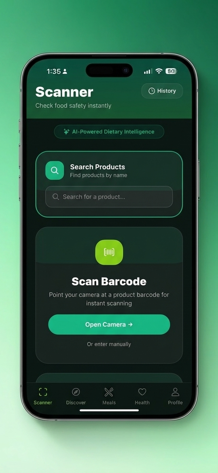 - Scan barcodes to instantly check if a product is safe for your dietary needs