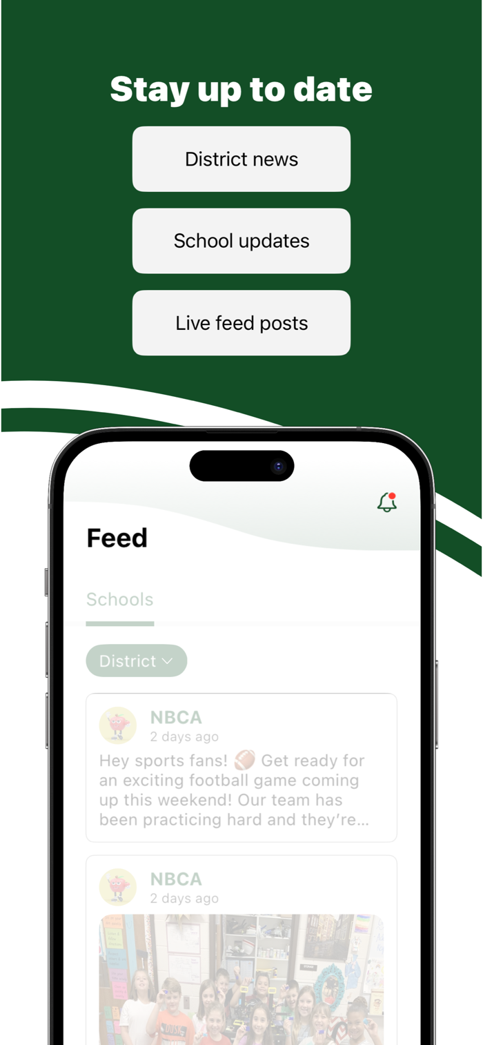 In the Live Feed is where you'll find updates from the administration about what's going on in the district right now. Whether that's celebrating a student's success, or reminding you about an upcoming deadline.