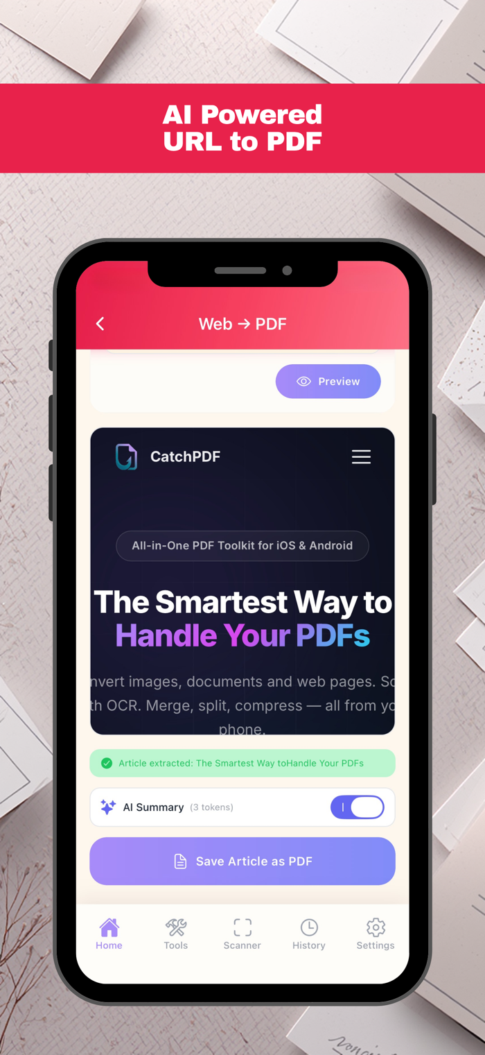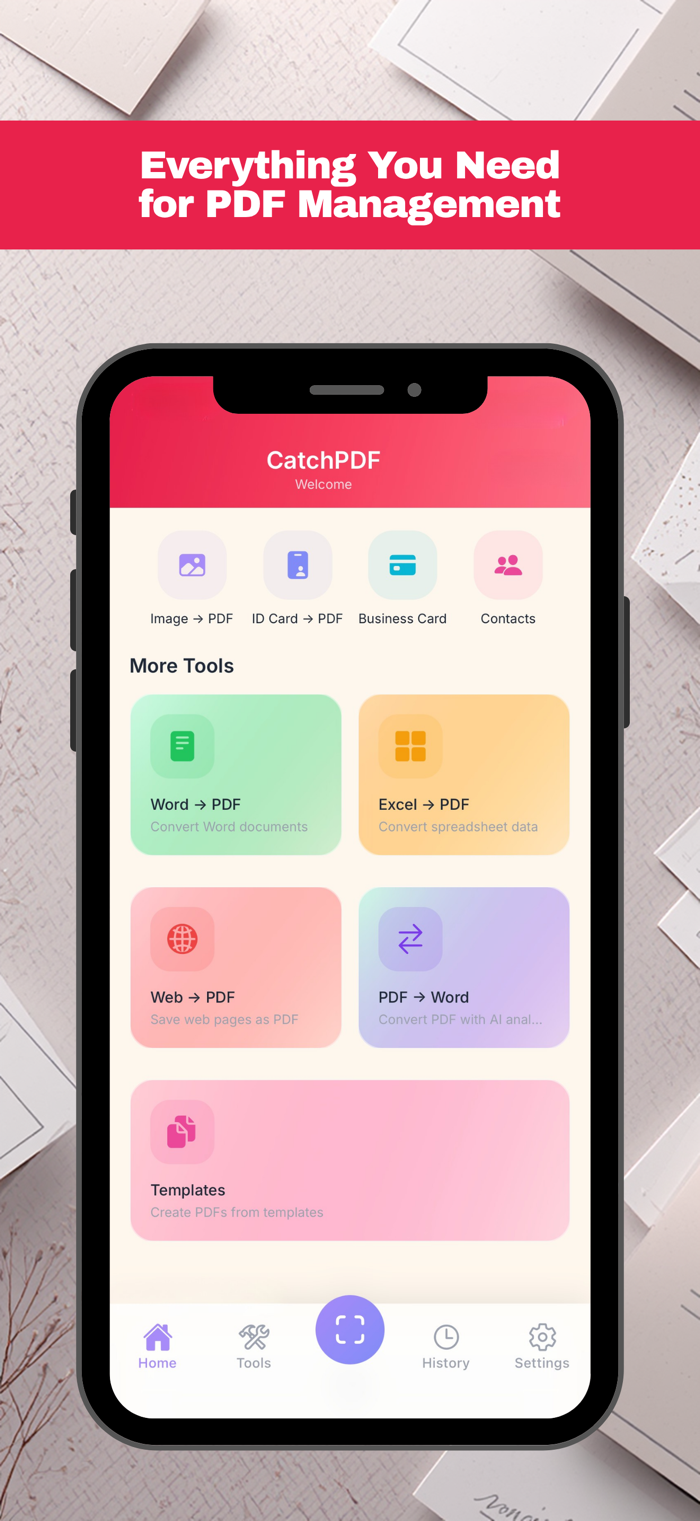 Stop juggling multiple apps for your document needs. CatchPDF brings scanning, converting, editing, and AI-powered tools together in one beautifully designed app.