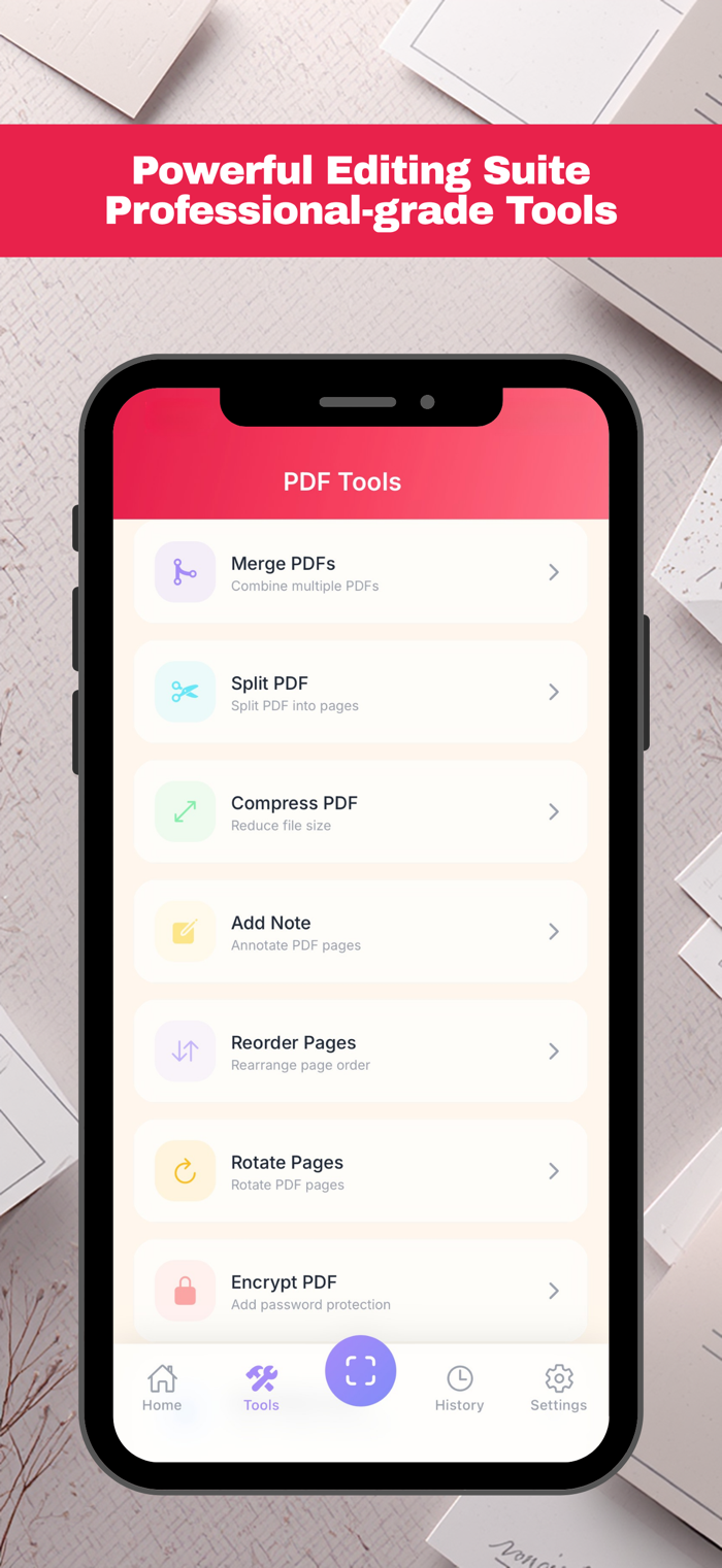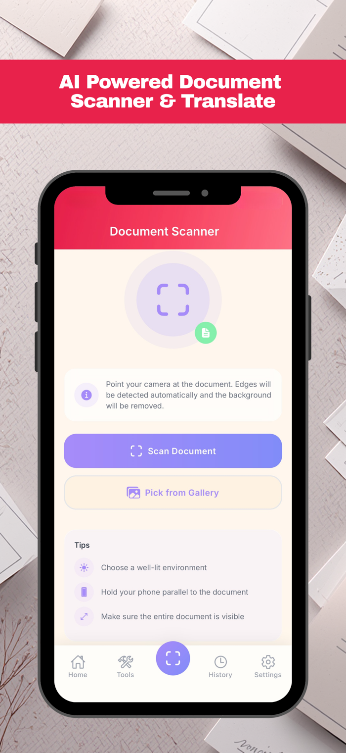 Document Scanner — Smart edge detection automatically finds your document, crops it perfectly, and converts to PDF. Extract text with AI-enhanced OCR that preserves paragraph structure.