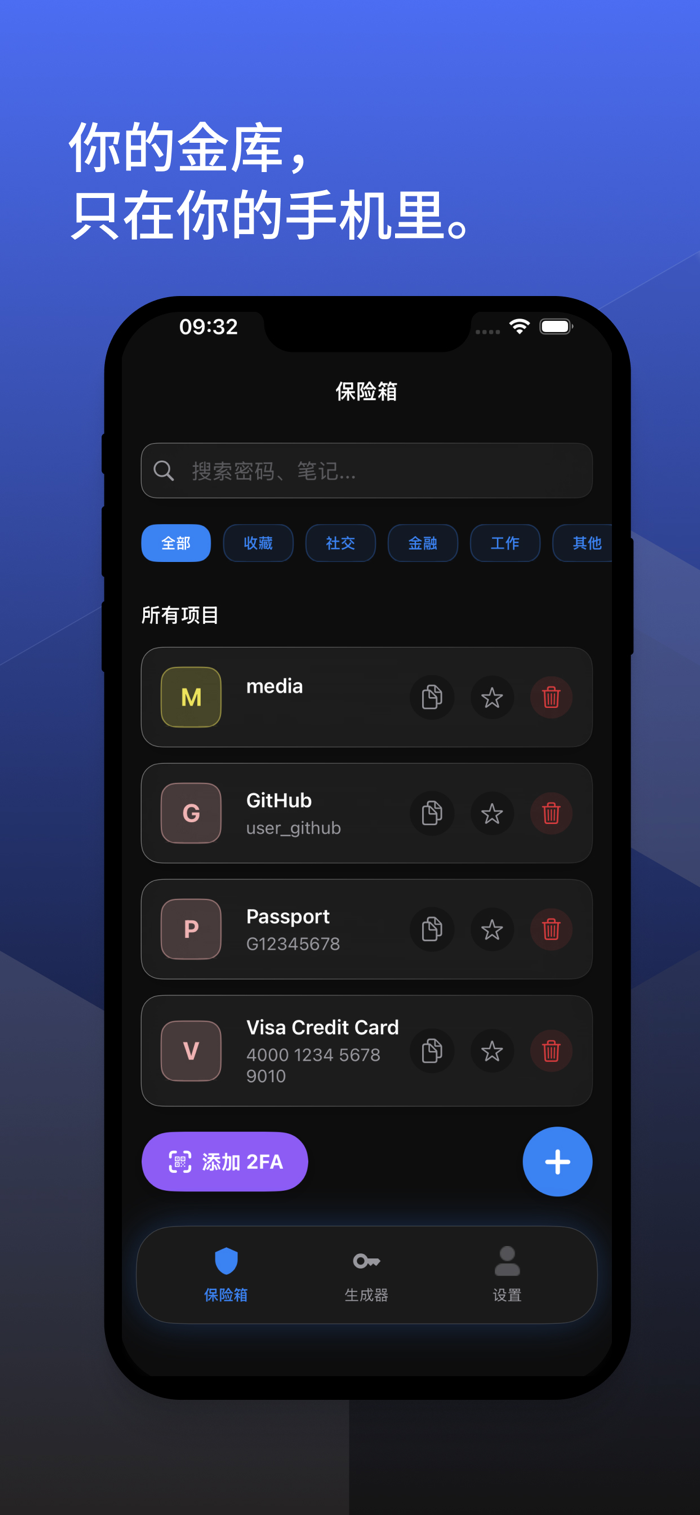 keefSafe是极致隐私的密码管理工具,数据全存于本地不上云。核心功能有:密码管理,扫描或拍摄自动识别加密保存;图片与视频加密保险箱,军事级加密,临时解密查看后自动重加密;伪装主密码,遇胁迫可展示空白金库保真实数据安全;离线设备迁移,无需联网迁金库,支持明文导出便于遗产继承。一次买断永久拥有,无订阅续费等隐藏收费,零云端等泄漏风险,无需注册账号,完全离线运行,数据自主掌控。
