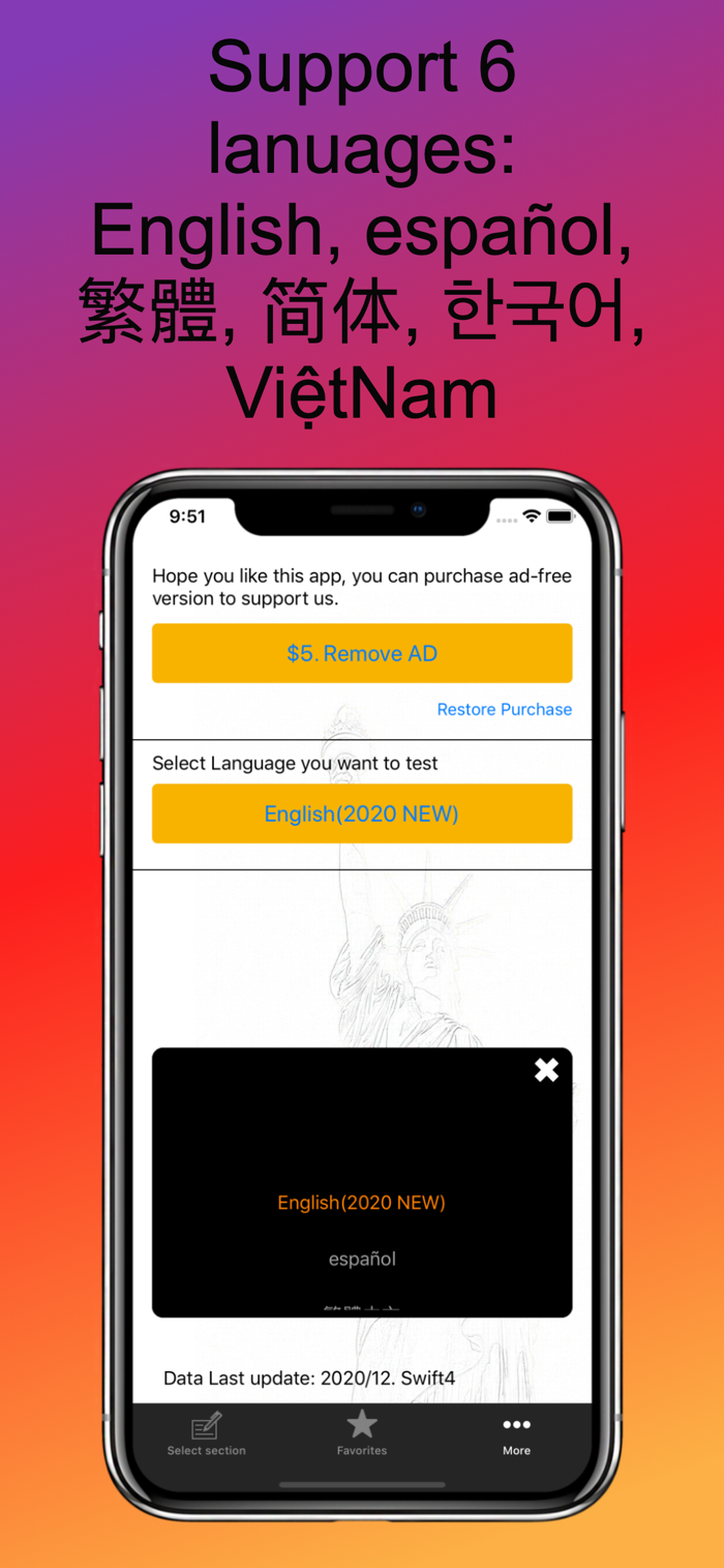提供美国入籍考试所需要的问题与答案。您可以透过不同的段落来选择要看的试题,帮助您快速了解试题内容。您也可以随时切换试题的语言。当然,如果您对于某些题目还不太熟悉,可以先存下来并且留下笔记。