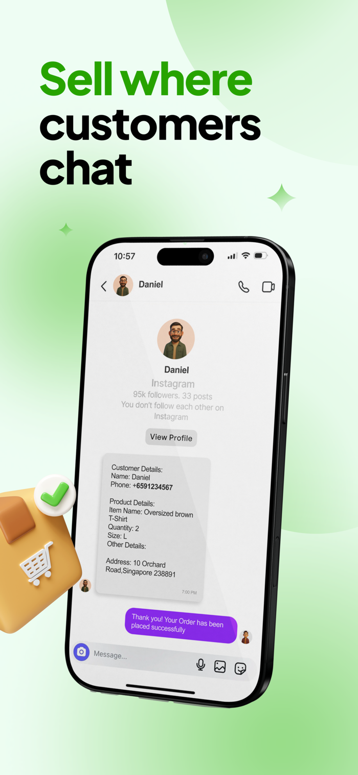 Keep chatting with customers as usual. Orders get auto-captured in the background