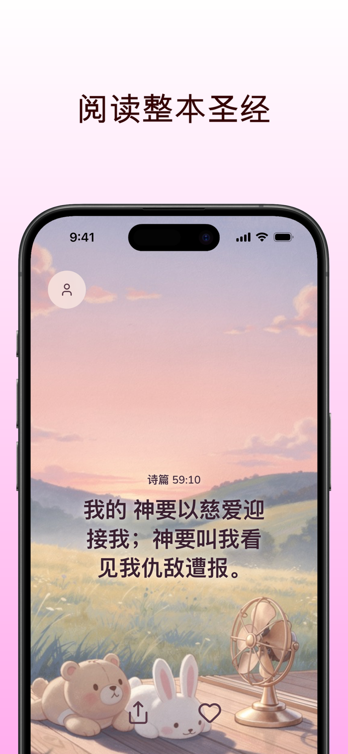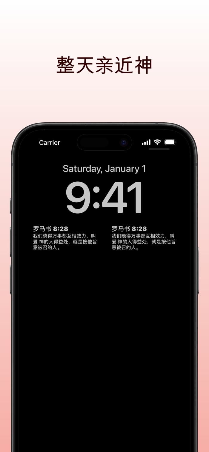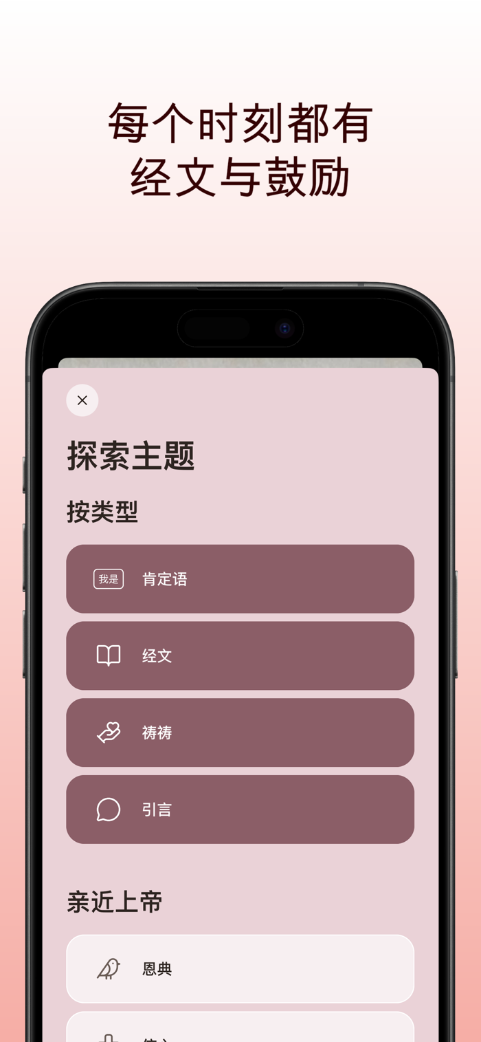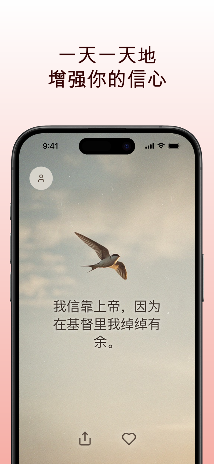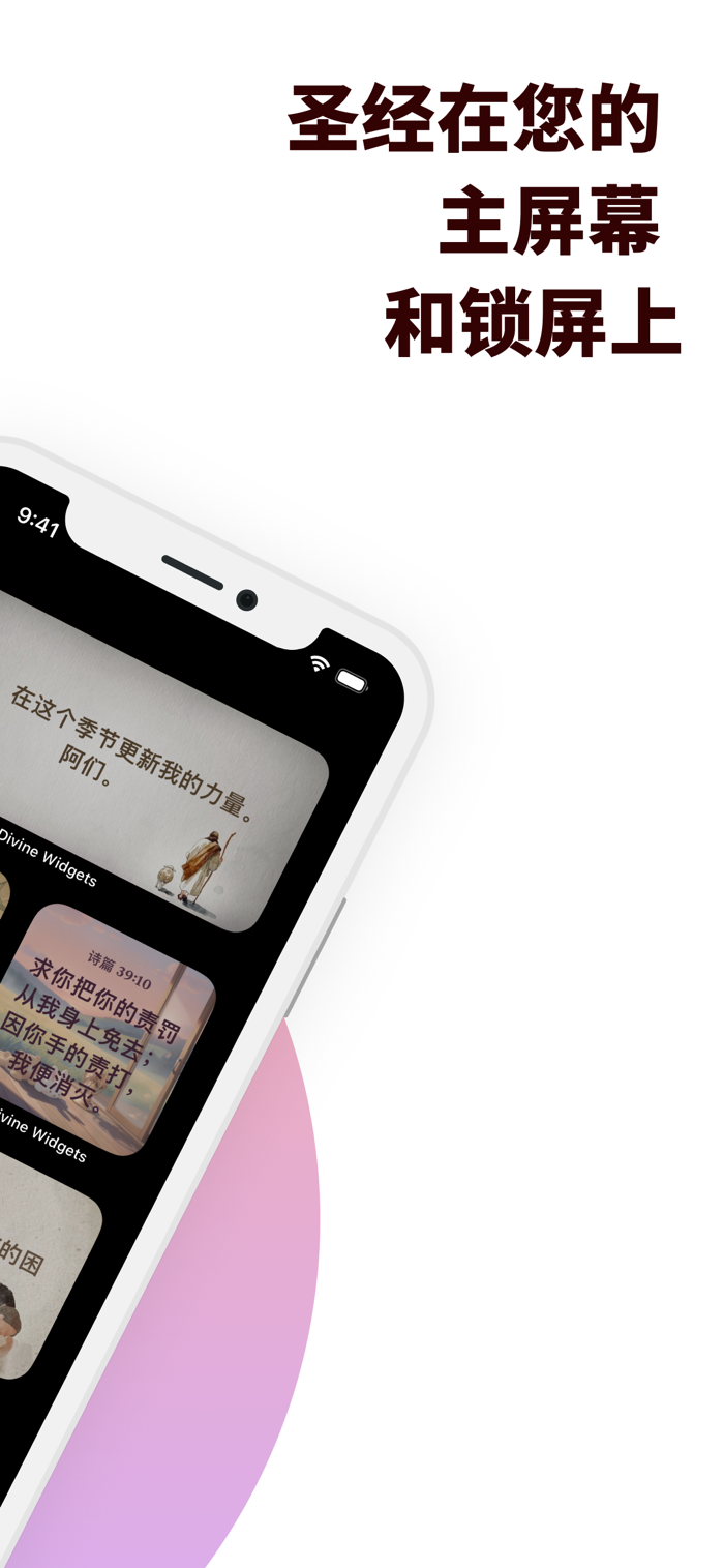 可自定义小组件、晨间经文、信仰宣告、祷告提醒和基督教名言,全天通知推送。