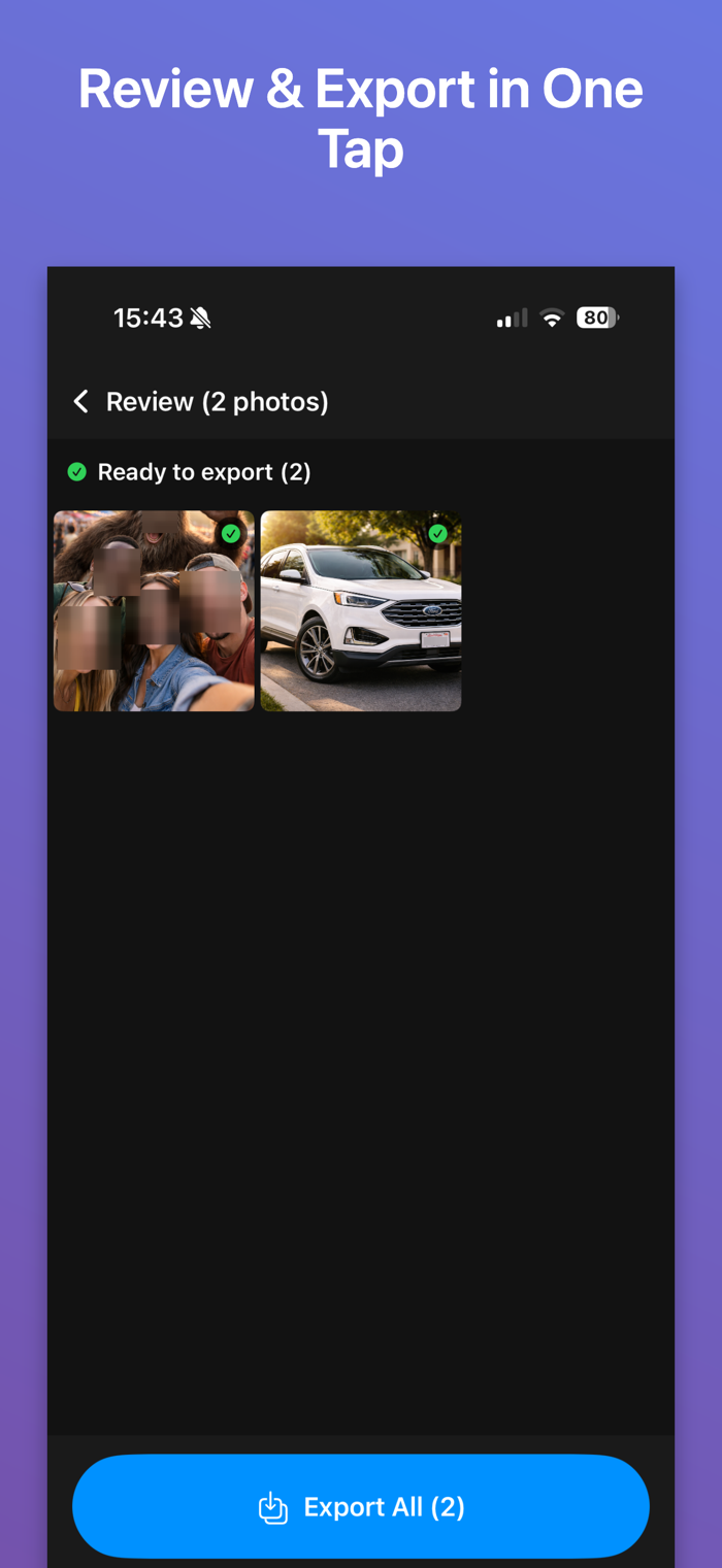 Need to blur multiple photos at once? Select several images, review each one, and export them all in one go. Perfect for cleaning up a whole album before sharing.