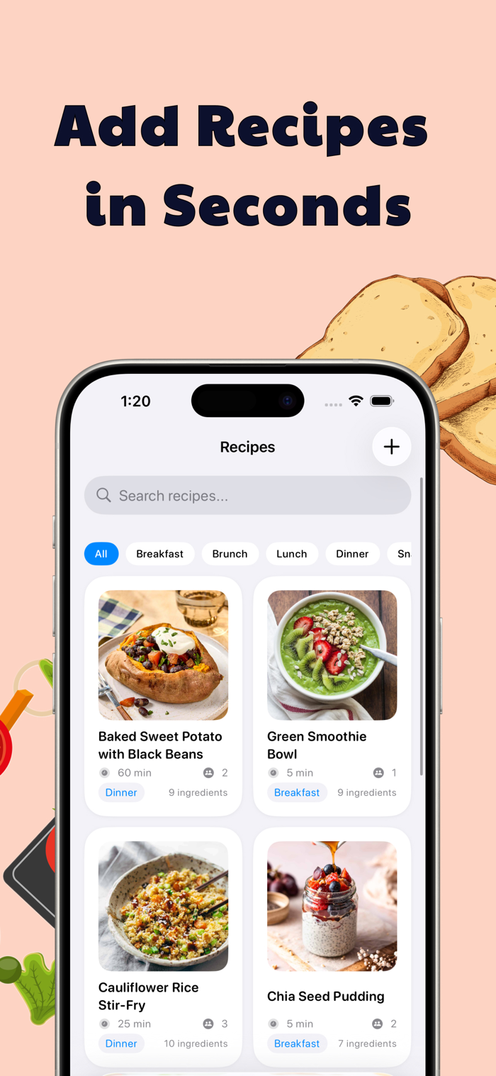 Cooking App Features: Sort recipes, categorize meals, and store ideas.