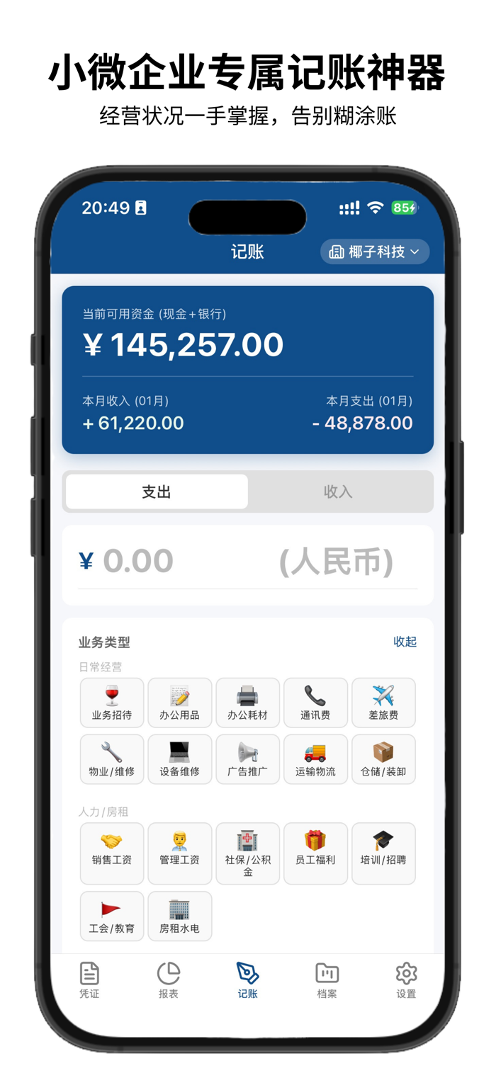 “小微记账”是一款专为中国大陆小微企业主、个体工商户及初创公司设计的本地化财务记账工具。