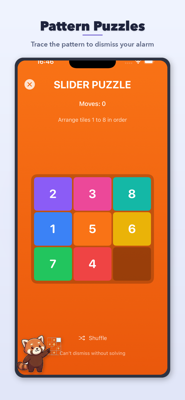 PandAlarm is the alarm clock that makes you prove you're awake before it stops ringing. Choose from 11 different wake-up missions that force your brain to engage — no more accidentally sleeping through your alarm.