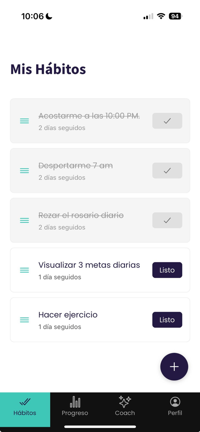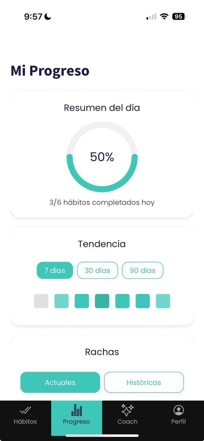 También ofrece insights diarios que te ayudan a reflexionar, mantenerte motivado y avanzar incluso en días difíciles. Pensada para personas ocupadas que buscan mejorar su bienestar, su productividad y su claridad mental sin depender únicamente de la fuerza de voluntad. Descubre una nueva forma de construir hábitos sostenibles y diseñar la vida que quieres, paso a paso.