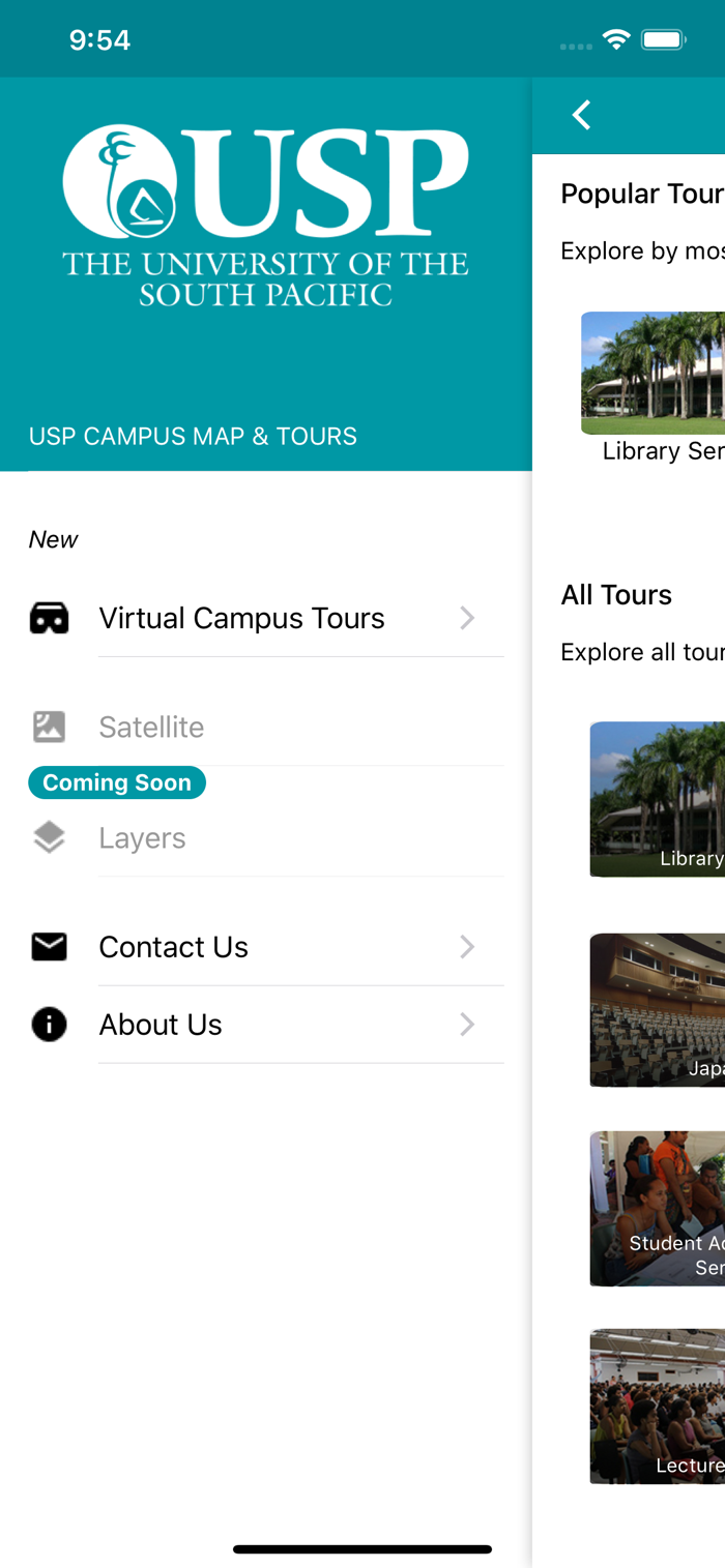 We have now introduced a new feature called Virtual Campus Tours. Which allows you to experience University of the South Pacific spaces as though you are physically there. You can now view the layout and features of facilities and some of the Buildings in USP