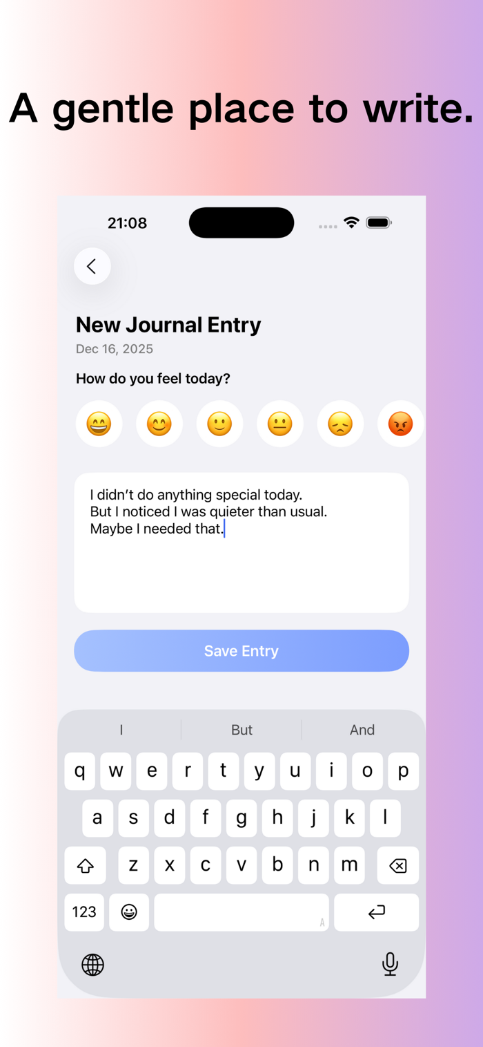 MellowMind is a quiet place to write and reflect — without pressure, goals, or expectations.