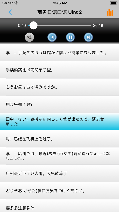 全部课程根据功能安排,以学到各种商务场合通用的日语为目标,每课都设有包含核心功能表达的短小对话。