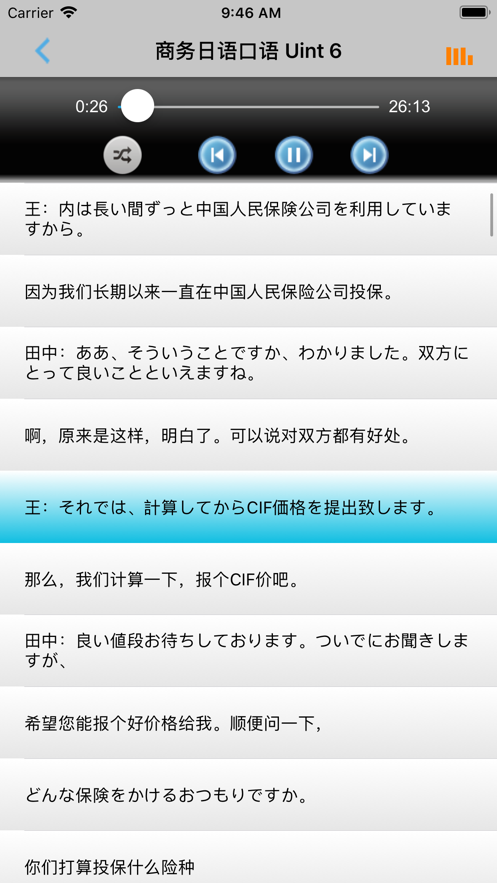 应用内容包括日语精读、日语听力、日语语音、商务日语会话、商务日语、日语泛读、日语语法、高级日语、商务日语视听、商务日语写作、商务日语翻译、旅游日语、外贸函电、国际贸易等。
