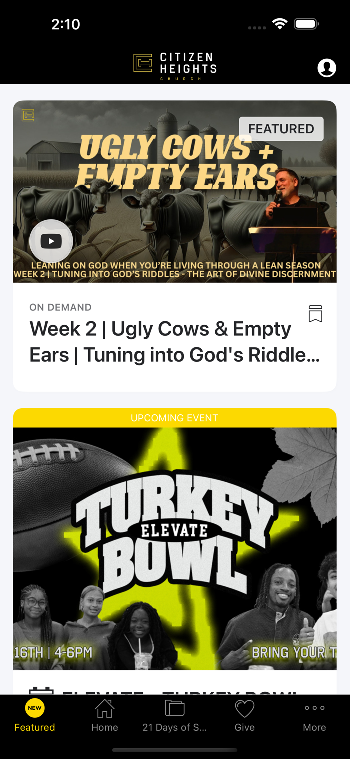 * Live video streaming of Citizen Heights Worship experiences