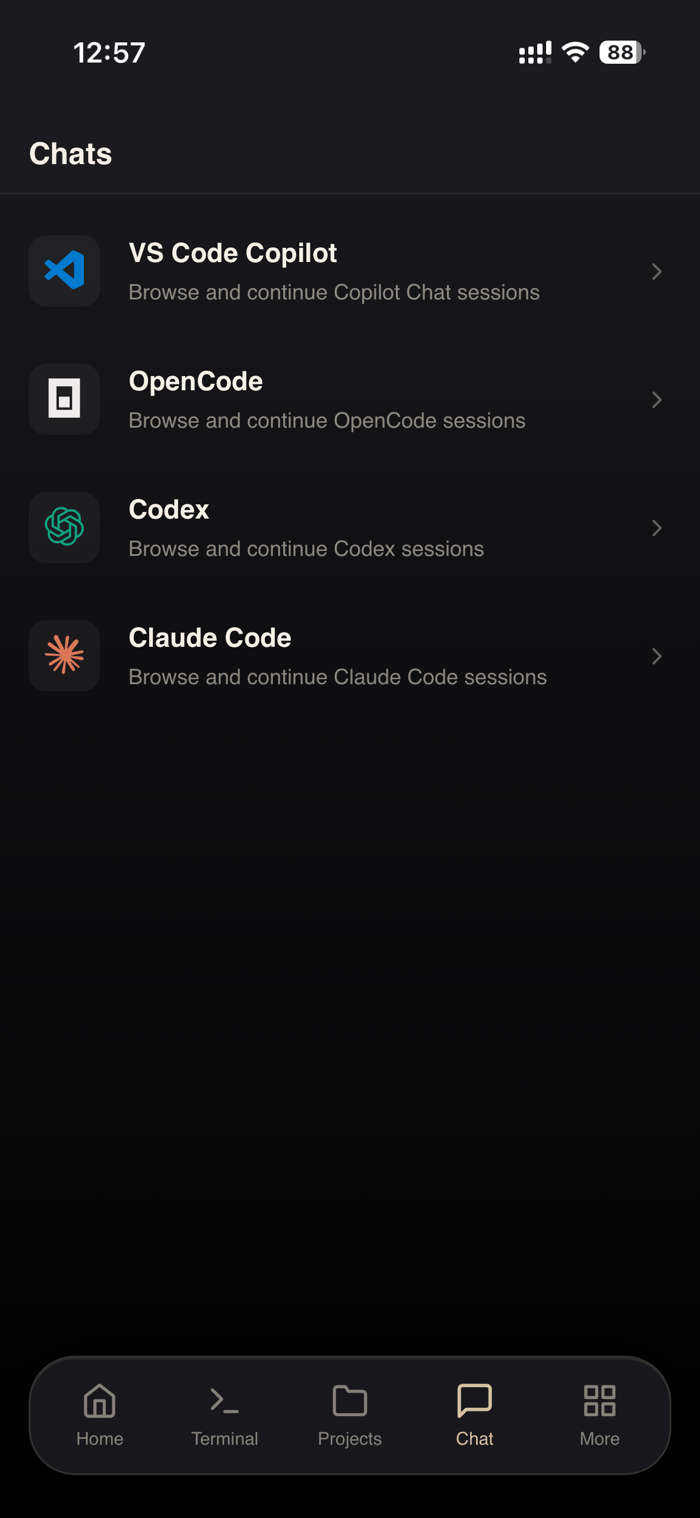 A real xterm-compatible terminal on your phone. Run shell commands, manage processes, debug remotely. Supports multiple tabs, Ctrl/Alt/Shift modifiers, and a developer keyboard toolbar built for mobile screens.